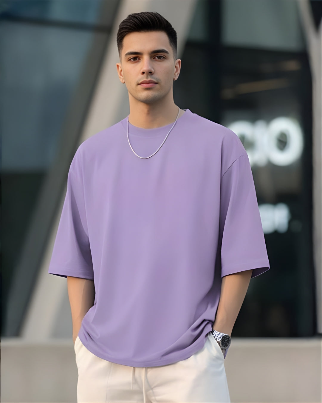 Men’s Lavender Oversized T-Shirt | Solid Premium Cotton Relaxed Fit Streetwear Tee