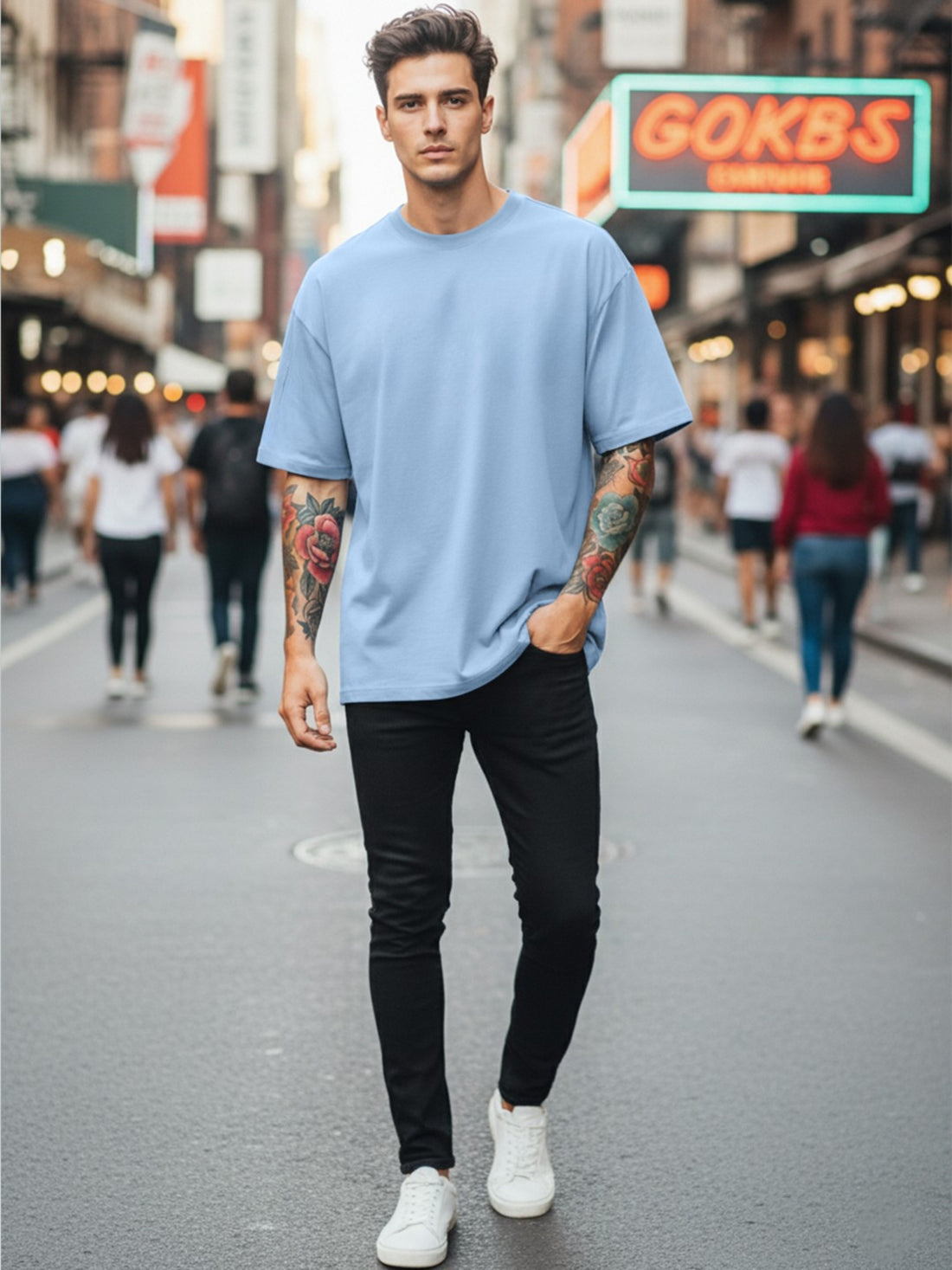 Men’s Ice Blue Oversized T-Shirt | Ice Blue Solid Premium Streetwear Tee